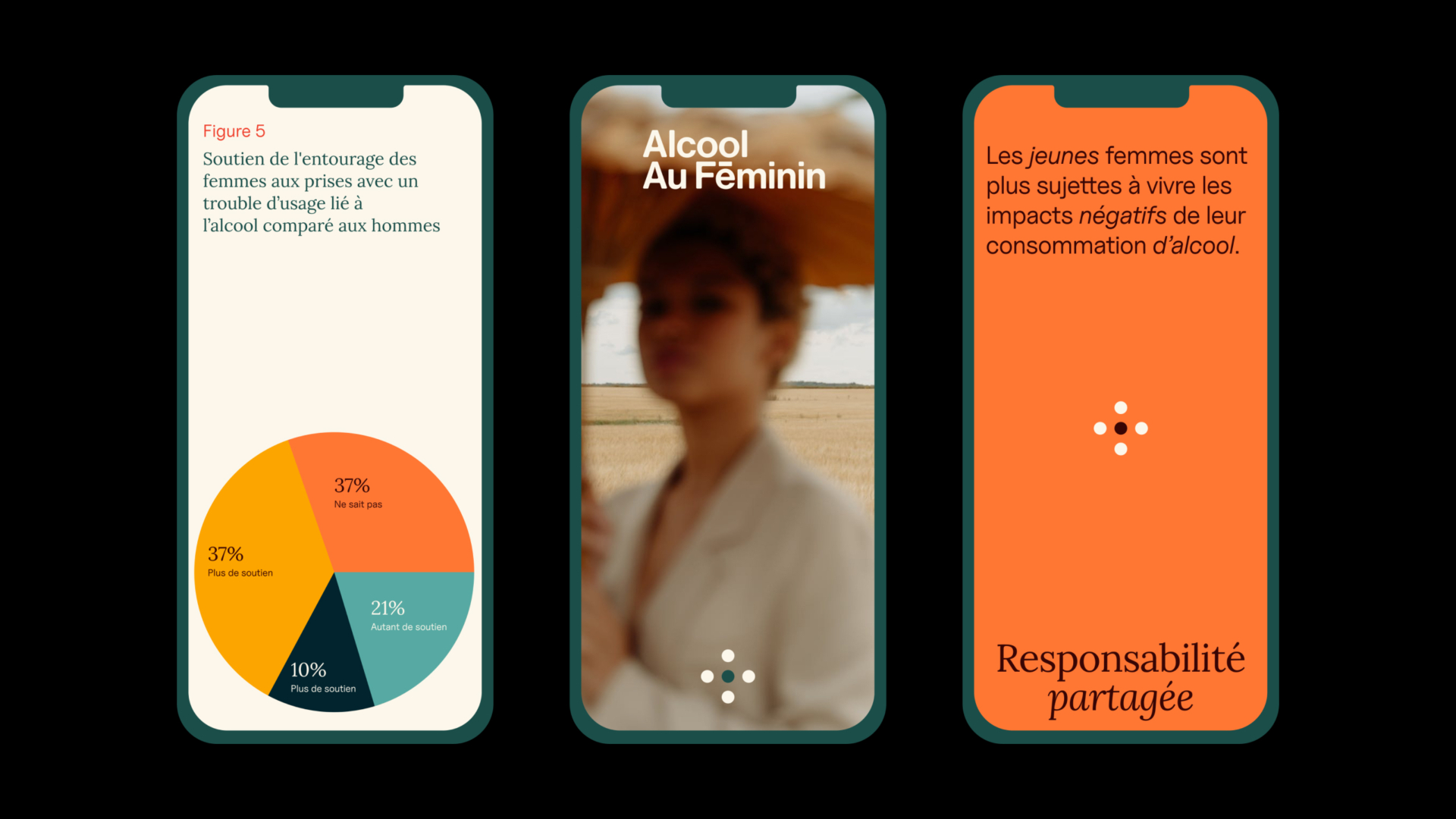The ASPQ (Québec’s Public Health Association) entrusted us with the mandate to design the visual identity and various tools for their awareness campaign on alcohol consumption among women. The goal was to foster a compassionate dialogue, shed light on the social pressures women face, and highlight our collective responsibility in creating safe and supportive environments.