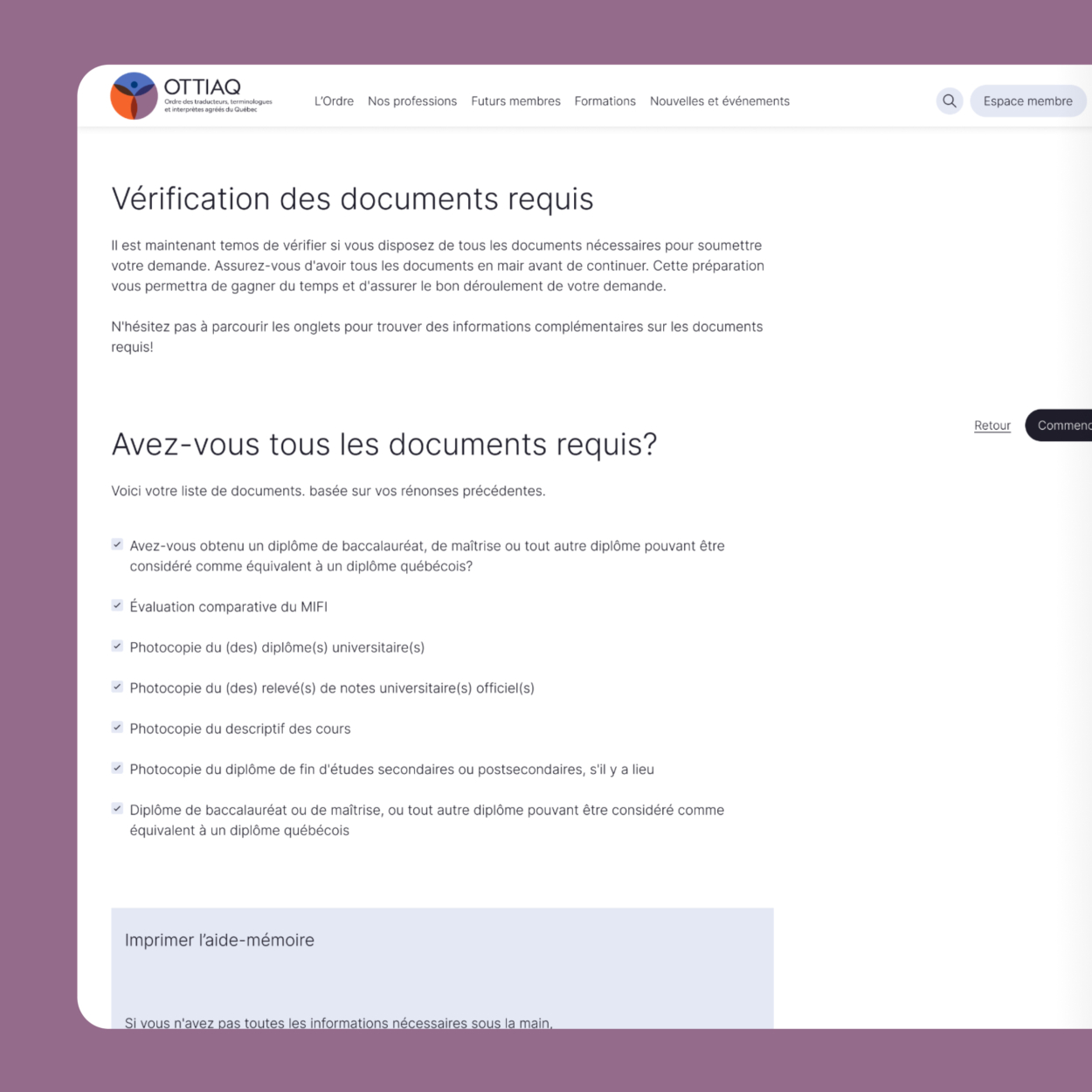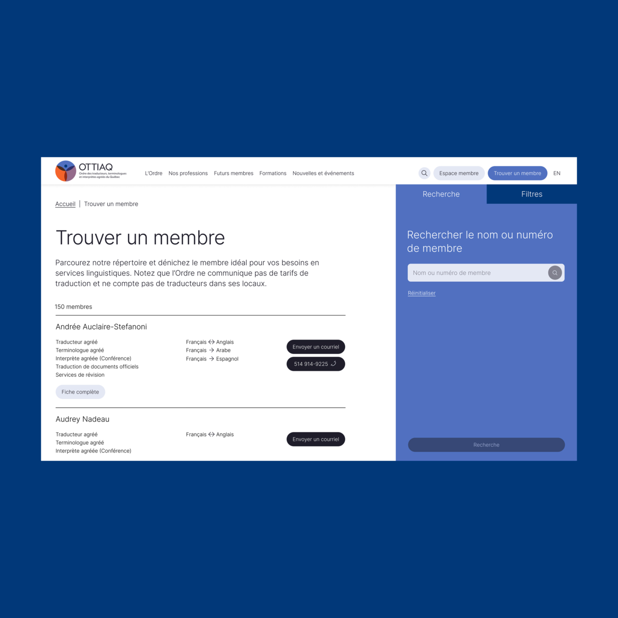 The collaboration between OTTIAQ and Akufen has been built over time. Following an initial website redesign in 2019, the Order once again turned to Akufen to fully rethink its brand identity. This renewed identity reflects both the unity of its members and the forward-thinking positioning of the Order, expressing the modernity and dynamism of its professional practices.