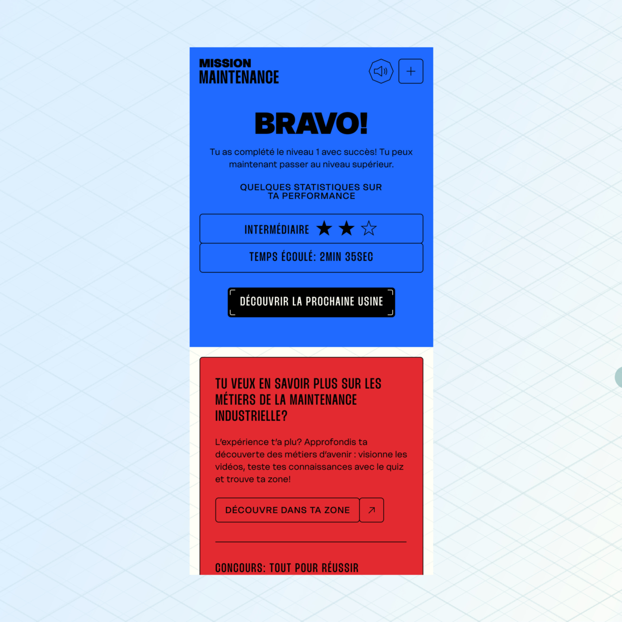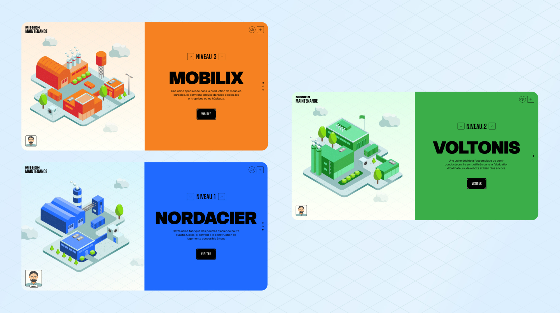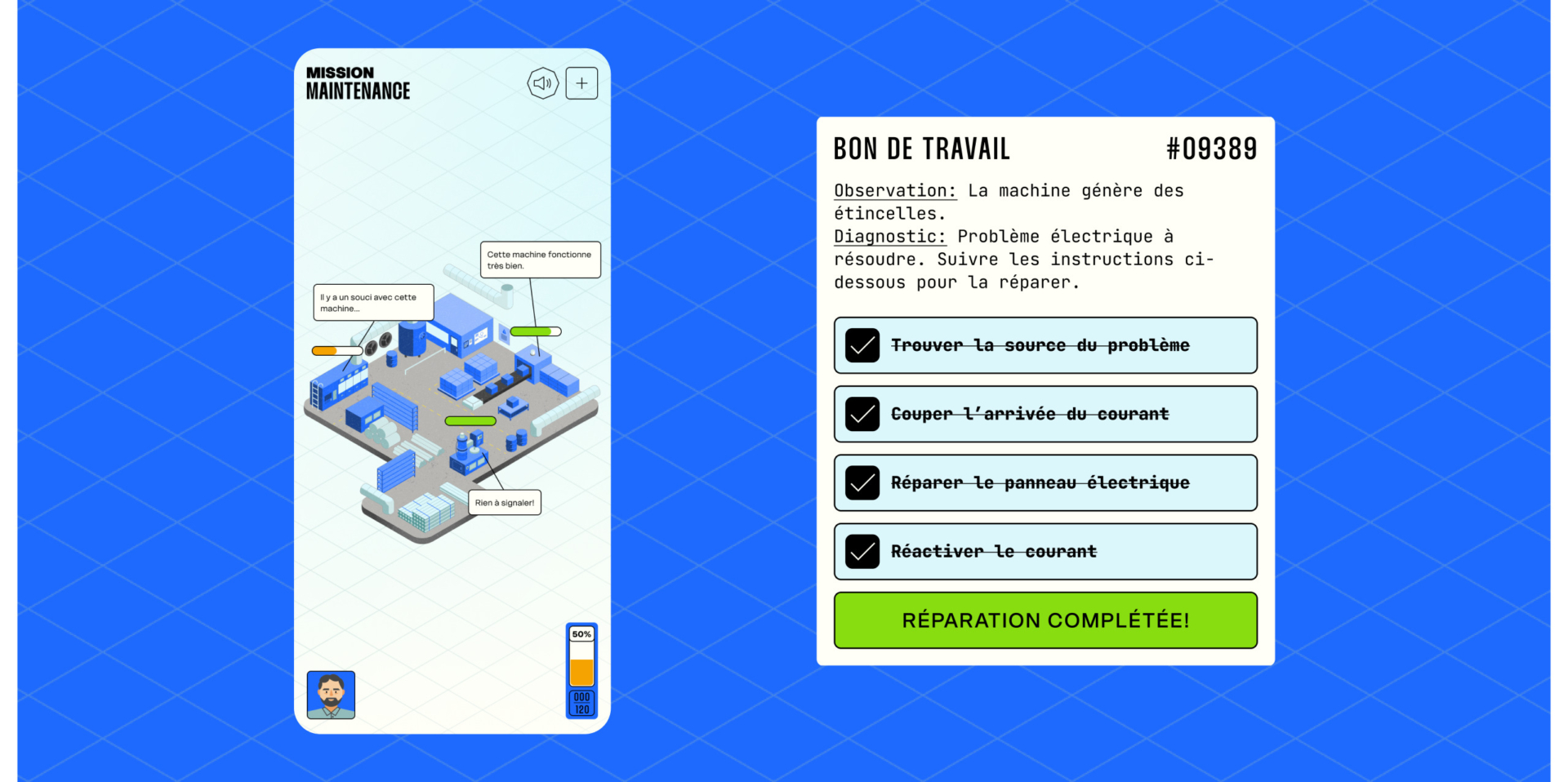 Un mandat aussi ambitieux qu’inspirant : concevoir un jeu interactif immersif pour révéler tout le potentiel des métiers de la maintenance. À travers une plateforme ludique, l’objectif était de capter l’attention des jeunes, de changer les perceptions et de traduire la réalité du terrain en une expérience engageante et concrète.